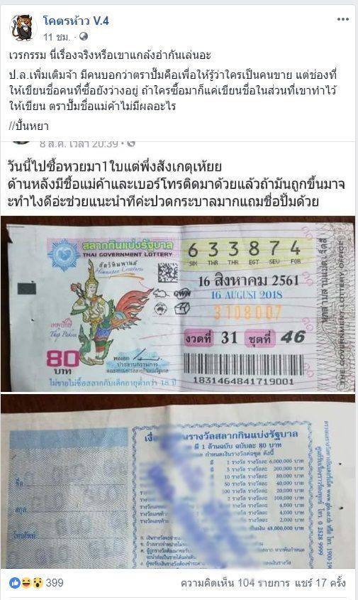 คือเริดมากแม่ มีความถ่ายโชว์ลอตเตอรี่รางวัลที่ 1 งวดวันที่ 1.